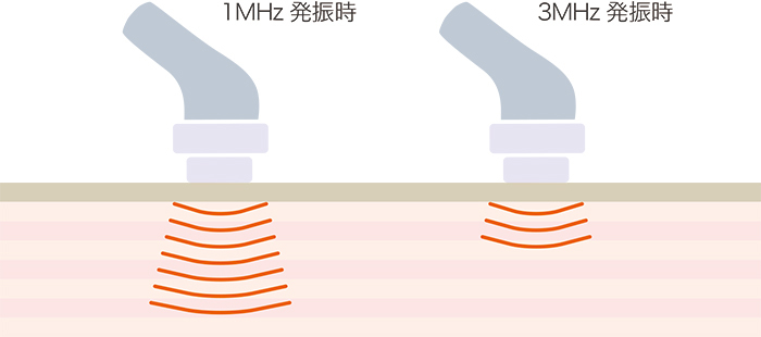 - 出力周波数を切り替えることで、超音波のエネルギーの到達深度をコントロールすることができます。