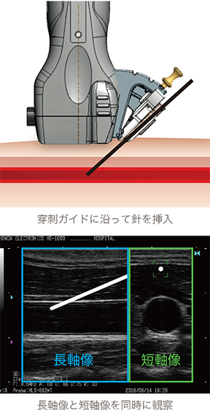 こうした背景から、超音波ガイド下で安全、確実、簡便に穿刺できる手法が 望まれています。