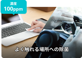 アルコールと比べると生産コストや肌への影響はより低く、除菌時間はより早く、広い用途でご使用いただけます。