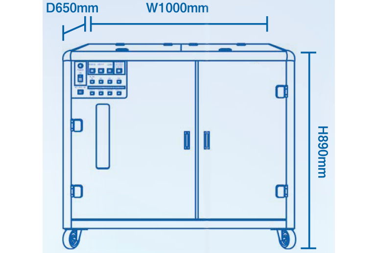 製造 | 生成量 Max600リットル/時間 有効塩素濃度 50、100、200、300ppm(出荷時に設定) pH 弱酸~中性 |